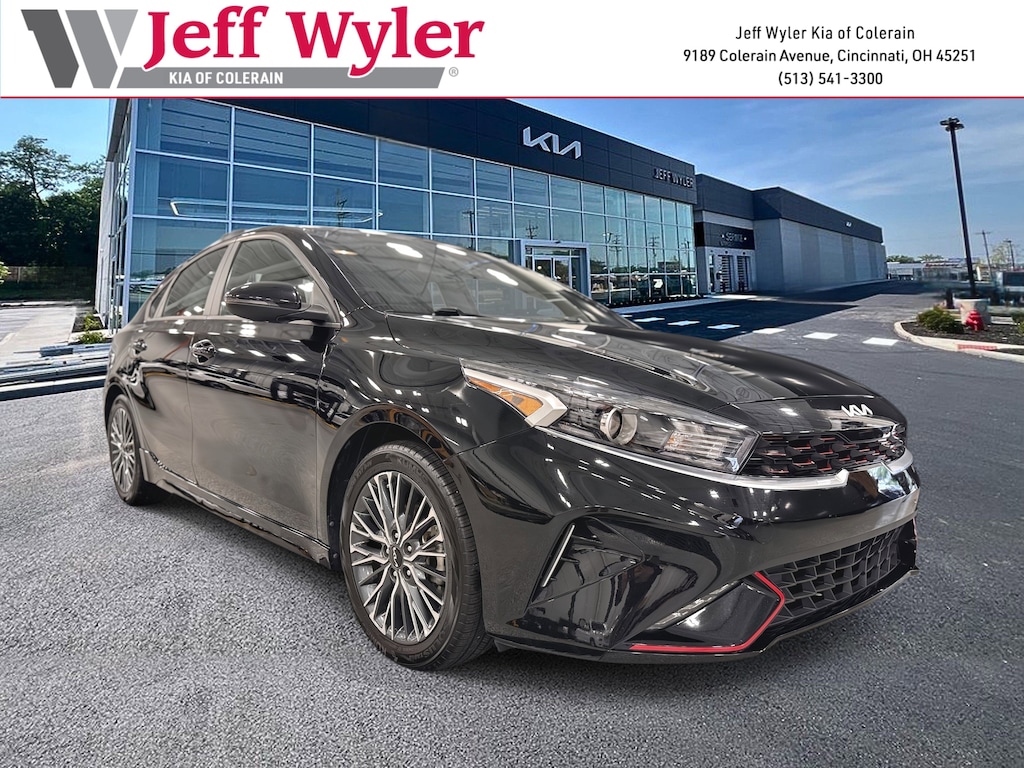 Jeff Wyler Kia of Colerain is pleased to offer this gorgeous 2023 Kia Forte GT-Line in Aurora Black Pearl. 17" x 7.0J Alloy Wheels, 4-Wheel Disc Brakes, 6 Speakers, ABS brakes, Air Conditioning, Alloy wheels, AM/FM radio: SiriusXM, Apple CarPlay & Android Auto, Auto High-beam Headlights, Automatic temperature control, Brake assist, Bumpers: body-color, Cloth & SynTex Seat Trim, Delay-off headlights, Driver door bin, Driver vanity mirror, Dual front impact airbags, Dual front side impact airbags, Electronic Stability Control, Emergency communication system, Exterior Parking Camera Rear, Front anti-roll bar, Front Bucket Seats, Front Center Armrest, Front dual zone A/C, Front fog lights, Front reading lights, Front wheel independent suspension, Fully automatic headlights, Heated door mirrors, Illuminated entry, Leather Shift Knob, Leather steering wheel, Low tire pressure warning, Navigation System, Occupant sensing airbag, Outside temperature display, Overhead airbag, Overhead console, Panic alarm, Passenger door bin, Passenger vanity mirror, Power door mirrors, Power steering, Power windows, Radio data system, Radio: 10.25" Display Audio, Rear seat center armrest, Rear window defroster, Remote keyless entry, Security system, Speed control, Split folding rear seat, Spoiler, Sport steering wheel, Steering wheel mounted audio controls, Tachometer, Telescoping steering wheel, Tilt steering wheel, Traction control, Trip computer, Turn signal indicator mirrors, and Variably intermittent wipers Our PRE-OWNED vehicles are put through a rigorous 167- POINT QUALITY ASSURANCE INSPECTION along with an average amount of over $1,400.00 SPENT to recondition each vehicle so we can be sure to deliver you the highest quality vehicle like you deserve! ***ONLINE PRICE DOES NOT INCLUDE WYLER FAMILY FIRST PACKAGE***
