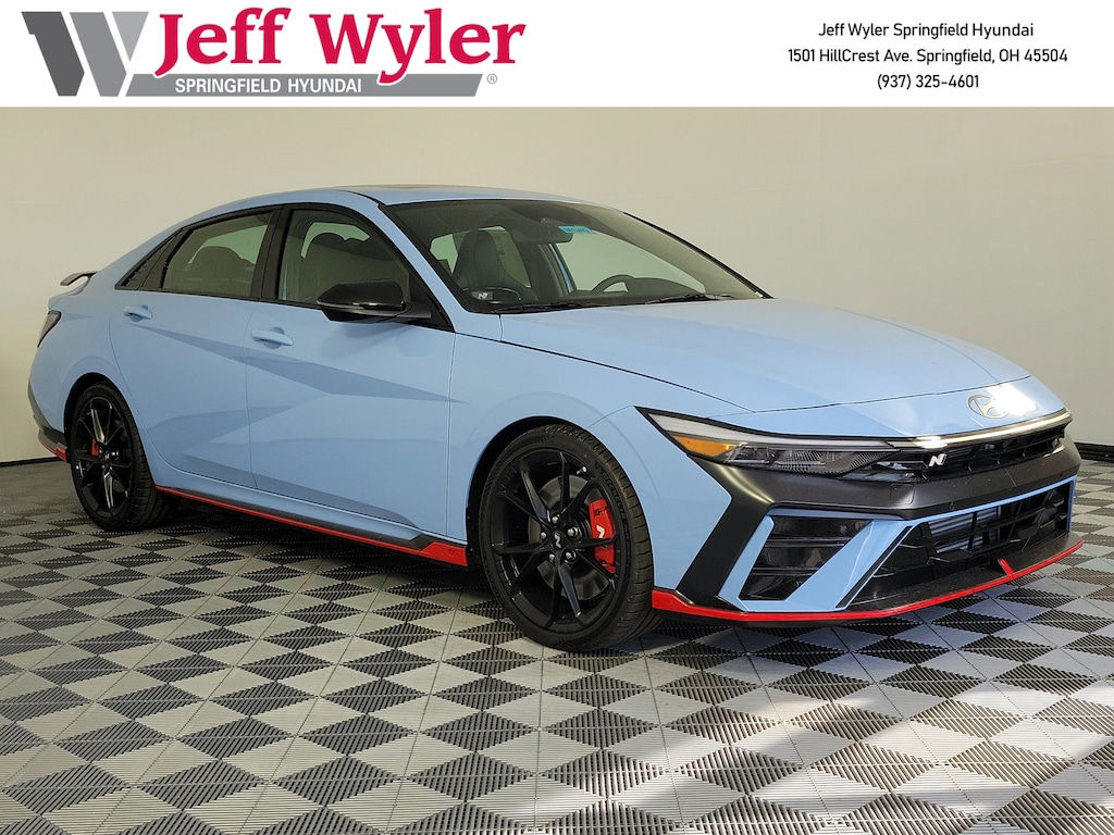 Jeff Wyler Springfield Auto Mall is delighted to offer this good-looking 2025 Hyundai Elantra N in Performance Blue. Well equipped with: Option Group 01, 4-Wheel Disc Brakes, 8 Speakers, ABS brakes, Air Conditioning, Alloy wheels, AM/FM radio: SiriusXM, Apple CarPlay & Android Auto, Auto High-beam Headlights, Automatic temperature control, Brake assist, Bumpers: body-color, Cargo Net, Compass, Delay-off headlights, Driver door bin, Driver vanity mirror, Dual front impact airbags, Dual front side impact airbags, Electronic Stability Control, Emergency communication system, Exterior Parking Camera Rear, First Aid Kit, Four wheel independent suspension, Front anti-roll bar, Front Bucket Seats, Front Center Armrest w/Storage, Front dual zone A/C, Front reading lights, Fully automatic headlights, Heated door mirrors, Heated front seats, Illuminated entry, Leather Shift Knob, Leather steering wheel, Leather-Trimmed w/Microsuede Inserts Seat Trim, Low tire pressure warning, N Light Heated Sport Bucket Seats, Navigation System, Occupant sensing airbag, Outside temperature display, Overhead airbag, Overhead console, Panic alarm, Passenger door bin, Passenger vanity mirror, Power door mirrors, Power moonroof, Power steering, Power windows, Radio: Bose AM/FM/HD/SXM Audio System, Rear Bumper Applique, Rear side impact airbag, Rear window defroster, Remote keyless entry, Security system, Speed control, Speed-sensing steering, Spoiler, Steering wheel mounted audio controls, Tachometer, Telescoping steering wheel, Tilt steering wheel, Traction control, Trip computer, Turn signal indicator mirrors, Variably intermittent wipers, and Wheels: 19" x 8.0" Forged Alloy. 20/27 City/Highway MPG 20/27 City/Highway MPGWyler Family First Package Includes: NanoCure Appearance Protection: Exterior & Interior Chemical Sealant Applied to Protect Against Environmental Hazards (7 Year Warranty Coverage). Pulse- Rear end Collision Avoidance System Theft Deterrent Strategy gives you 5 Years of Coverage against vehicle Theft, Offering up to a $5,000 benefit.