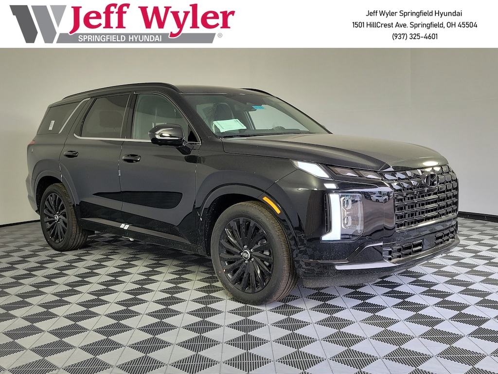 Jeff Wyler Springfield Auto Mall is excited to offer this wonderful-looking 2025 Hyundai Palisade Calligraphy Night Edition in Abyss Black Pearl. Well equipped with: Option Group 01, 12 Speakers, 3rd row seats: split-bench, 4-Wheel Disc Brakes, ABS brakes, Air Conditioning, Alloy wheels, AM/FM radio: SiriusXM, Apple CarPlay & Android Auto, Auto High-beam Headlights, Auto-dimming door mirrors, Auto-dimming Rear-View mirror, Auto-leveling suspension, Automatic temperature control, Brake assist, Bumpers: body-color, Cargo Net, Carpeted Floor Mats, Compass, Delay-off headlights, Driver door bin, Driver vanity mirror, Dual front impact airbags, Dual front side impact airbags, Electronic Stability Control, Emergency communication system, Exterior Parking Camera Rear, First Aid Kit, Four wheel independent suspension, Front anti-roll bar, Front Bucket Seats, Front Center Armrest, Front dual zone A/C, Front reading lights, Fully automatic headlights, Garage door transmitter: HomeLink, harman/kardon® Speakers, Heads-Up Display, Heated & Ventilated Front Bucket Seats, Heated door mirrors, Heated front seats, Heated rear seats, Heated steering wheel, Illuminated entry, Knee airbag, Leather steering wheel, Low tire pressure warning, Memory seat, Microfiber Suede Seat Trim, Navigation System, Occupant sensing airbag, Outside temperature display, Overhead airbag, Overhead console, Panic alarm, Passenger door bin, Passenger vanity mirror, Power door mirrors, Power driver seat, Power Liftgate, Power moonroof, Power passenger seat, Power steering, Power windows, Radio data system, Radio: AM/FM/MP3 Premium Audio System, Rain sensing wipers, Rear air conditioning, Rear anti-roll bar, Rear audio controls, Rear reading lights, Rear side impact airbag, Rear window defroster, Rear window wiper, Reclining 3rd row seat, Remote keyless entry, Roof rack, Security system, Speed control, Speed-sensing steering, Split folding rear seat, Spoiler, Steering wheel mounted audio controls, Tachometer, Telescoping steering wheel, Tilt steering wheel, Tow Hitch, Traction control, Trip computer, Turn signal indicator mirrors, Variably intermittent wipers, Ventilated front seats, Ventilated rear seats, and Wheels: 20" x 7.5J Black Liquid Paint Alloy. 19/24 City/Highway MPGWyler Family First Package Includes: NanoCure Appearance Protection: Exterior & Interior Chemical Sealant Applied to Protect Against Environmental Hazards (7 Year Warranty Coverage). Pulse- Rear end Collision Avoidance System Theft Deterrent Strategy gives you 5 Years of Coverage against vehicle Theft, Offering up to a $5,000 benefit.