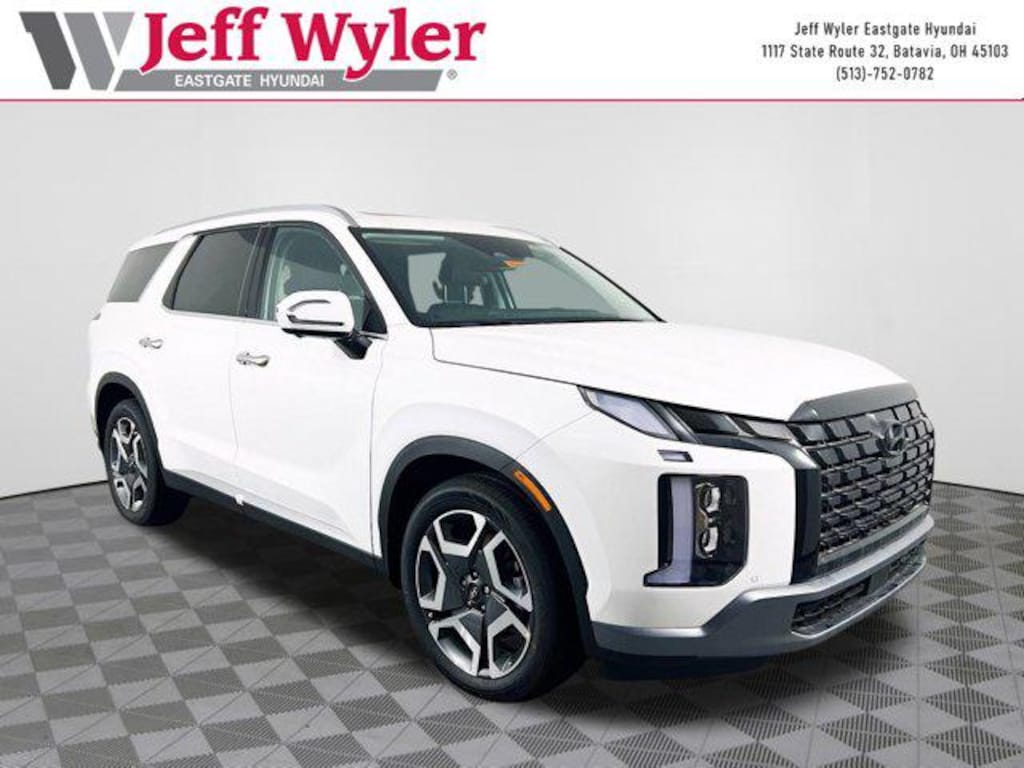 Hyper White 2025 Hyundai Palisade SEL Premium V6 AWD 8-Speed Automatic with SHIFTRONIC 19/24 City/Highway MPG Jeff Wyler Eastgate Auto Mall is pleased to offer this stunning-looking 2025 Hyundai Palisade SEL Premium in Hyper White. Well equipped with: 8-Passenger Bench Seating (8-Passenger Bench Seating (P3)), 3rd row seats: split-bench, 4-Wheel Disc Brakes, 6 Speakers, ABS brakes, Air Conditioning, All-Season Fitted Liners, Alloy wheels, AM/FM radio: SiriusXM, Apple CarPlay & Android Auto, Auto High-beam Headlights, Auto-dimming door mirrors, Auto-dimming Rear-View mirror, Automatic temperature control, Brake assist, Bumpers: body-color, Cargo Net, Cargo Tray, Carpeted Floor Mats, Delay-off headlights, Driver door bin, Driver vanity mirror, Dual front impact airbags, Dual front side impact airbags, Electronic Stability Control, Emergency communication system, Exterior Parking Camera Rear, First Aid Kit, Four wheel independent suspension, Front anti-roll bar, Front Bucket Seats, Front Center Armrest, Front dual zone A/C, Front reading lights, Fully automatic headlights, Garage door transmitter: HomeLink, H-Tex Leatherette Seat Trim, Heated & Ventilated Front Bucket Seats, Heated door mirrors, Heated front seats, Heated rear seats, Heated steering wheel, Illuminated entry, Knee airbag, Leather steering wheel, Low tire pressure warning, Memory seat, Mudguards, Navigation System, Occupant sensing airbag, Outside temperature display, Overhead airbag, Overhead console, Panic alarm, Passenger door bin, Passenger vanity mirror, Power door mirrors, Power driver seat, Power Liftgate, Power moonroof, Power passenger seat, Power steering, Power windows, Radio data system, Radio: AM/FM/MP3 Audio System, Rear air conditioning, Rear anti-roll bar, Rear audio controls, Rear Bumper Applique, Rear reading lights, Rear side impact airbag, Rear window defroster, Rear window wiper, Reclining 3rd row seat, Remote keyless entry, Roadside Assistance Kit, Security system, Speed control, Speed-sensing steering, Split folding rear seat, Spoiler, Steering wheel mounted audio controls, Tachometer, Telescoping steering wheel, Tilt steering wheel, Traction control, Trip computer, Turn signal indicator mirrors, Variably intermittent wipers, Ventilated front seats, Ventilated rear seats, Wheel Locks, and Wheels: 20" x 7.5J Alloy.