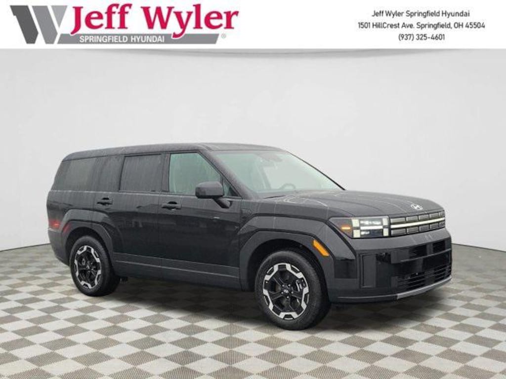 Priced below KBB Fair Purchase Price! Jeff Wyler Springfield Auto Mall is honored to offer this wonderful-looking 2026 Hyundai Santa Fe SE in Phantom Black. Well equipped with: Option Group 01, 18" x 7.5J Alloy Wheels, 3rd row seats: bench, 4-Wheel Disc Brakes, 6 Speakers, ABS brakes, Air Conditioning, All Season Fitted Liners, Alloy wheels, AM/FM radio: SiriusXM, Apple CarPlay & Android Auto, Auto High-beam Headlights, Brake assist, Bumpers: body-color, Cargo Blocks, Cargo Cover/Screen, Cargo Net, Carpeted Floor Mats, Delay-off headlights, Driver door bin, Driver vanity mirror, Dual front impact airbags, Dual front side impact airbags, Electronic Stability Control, Emergency communication system, Exterior Parking Camera Rear, First Aid Kit, Four wheel independent suspension, Front anti-roll bar, Front Bucket Seats, Front Center Armrest, Front reading lights, Fully automatic headlights, Heated door mirrors, Illuminated entry, Knee airbag, Leather steering wheel, Low tire pressure warning, Occupant sensing airbag, Outside temperature display, Overhead airbag, Overhead console, Panic alarm, Passenger door bin, Passenger vanity mirror, Power door mirrors, Power Liftgate, Power steering, Power windows, Radio: AM/FM/HD Display Audio, Rear anti-roll bar, Rear seat center armrest, Rear side impact airbag, Rear window defroster, Rear window wiper, Remote keyless entry, Security system, Severe Weather Kit, Speed control, Speed-sensing steering, Split folding rear seat, Spoiler, Steering wheel mounted audio controls, Tachometer, Telescoping steering wheel, Tilt steering wheel, Traction control, Trip computer, Variably intermittent wipers, and YES Essentials Stain-Resistant Cloth Seat Trim.Wyler Family First Package Includes: NanoCure Appearance Protection: Exterior & Interior Chemical Sealant Applied to Protect Against Environmental Hazards (7 Year Warranty Coverage). Pulse- Rear end Collision Avoidance System Theft Deterrent Strategy gives you 5 Years of Coverage against vehicle Theft, Offering up to a $5,000 benefit. $1,250 - Exp. 01/31/2026