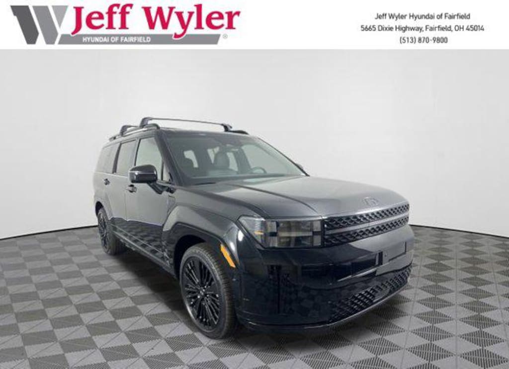 2026 Hyundai Santa Fe Hybrid Phantom Black Calligraphy AWD 6-Speed Automatic with Shiftronic I4 I4, Android Auto, Apple CarPlay, CALL NOW FOR YOUR VIP APPOINTMENT 513-870-9800, FULLY SERVICED w/RECORDS, GUARANTEED FINANCING!! NO MATTER YOUR SITUATION WE CAN GET AN APPROVAL!!, THE #1 Volume dealer in the region! Come see why for yourself Today!!, WE PAY MORE FOR YOUR TRADE!!. Jeff Wyler Hyundai of Fairfield is proud to offer this great 2026 Hyundai Santa Fe Hybrid Calligraphy in Phantom Black. Well equipped with: Option Group 01, I4, Android Auto, Apple CarPlay, CALL NOW FOR YOUR VIP APPOINTMENT 513-870-9800, FULLY SERVICED w/RECORDS, GUARANTEED FINANCING!! NO MATTER YOUR SITUATION WE CAN GET AN APPROVAL!!, THE #1 Volume dealer in the region! Come see why for yourself Today!!, WE PAY MORE FOR YOUR TRADE!!, 12 Speakers, 3rd row seats: bench, 4-Wheel Disc Brakes, ABS brakes, Air Conditioning, All Season Fitted Liners, Alloy wheels, AM/FM radio: SiriusXM, Apple CarPlay & Android Auto, Auto High-beam Headlights, Auto-dimming Rear-View mirror, Automatic temperature control, Brake assist, Bumpers: body-color, Cargo Blocks, Cargo Cover/Screen, Cargo Net, Cargo Tray, Carpeted Floor Mats, Delay-off headlights, Driver door bin, Driver vanity mirror, Dual front impact airbags, Dual front side impact airbags, Electronic Stability Control, Emergency communication system, Exterior Parking Camera Rear, First Aid Kit, Four wheel independent suspension, Front anti-roll bar, Front Bucket Seats, Front Center Armrest, Front dual zone A/C, Front reading lights, Fully automatic headlights, Garage door transmitter: HomeLink, Heads-Up Display, Heated & Ventilated Front Bucket Seats, Heated door mirrors, Heated front seats, Heated rear seats, Heated steering wheel, Illuminated entry, Knee airbag, Leather steering wheel, Low tire pressure warning, Memory seat, Navigation System, Occupant sensing airbag, Outside temperature display, Overhead airbag, Overhead console, Panic alarm, Passenger door bin, Passenger vanity mirror, Power door mirrors, Power driver seat, Power Liftgate, Power moonroof, Power passenger seat, Power steering, Power windows, Quilted Premium Nappa Leather Seat Trim, Radio: AM/FM/HD Bose Premium Audio System, Rain sensing wipers, Rear anti-roll bar, Rear side impact airbag, Rear window defroster, Rear window wiper, Remote keyless entry, Roof Rack Crossbars, Security system, Speed control, Speed-sensing steering, Split folding rear seat, Spoiler, Steering wheel mounted audio controls, Tachometer, Telescoping steering wheel, Tilt steering wheel, Traction control, Transverse Panel, Trip computer, Turn signal indicator mirrors, Variably intermittent wipers, Ventilated front seats, and Wheels: 20" x 8.5J Unique Dark Finish Alloy. Price includes: $400 - College Graduate Program. Exp. 11/03/2025 $500 - Military Program. Exp. 11/03/2025