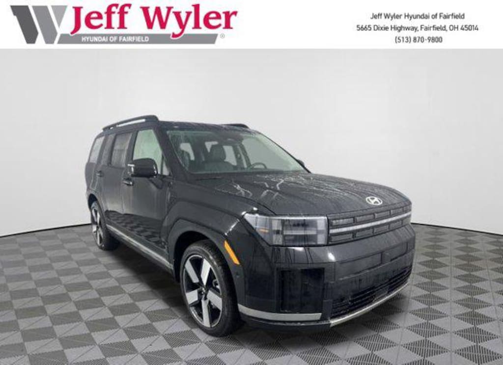 2026 Hyundai Santa Fe Phantom Black Limited AWD 8-Speed Automatic with SHIFTRONIC 2.5L I4 AWD, Black Leather, Android Auto, Apple CarPlay, CALL NOW FOR YOUR VIP APPOINTMENT 513-870-9800, FULLY SERVICED w/RECORDS, GUARANTEED FINANCING!! NO MATTER YOUR SITUATION WE CAN GET AN APPROVAL!!, THE #1 Volume dealer in the region! Come see why for yourself Today!!, WE PAY MORE FOR YOUR TRADE!!. Jeff Wyler Hyundai of Fairfield is excited to offer this beautiful-looking 2026 Hyundai Santa Fe Limited in Phantom Black. Well equipped with: Option Group 01, AWD, Black Leather, Android Auto, Apple CarPlay, CALL NOW FOR YOUR VIP APPOINTMENT 513-870-9800, FULLY SERVICED w/RECORDS, GUARANTEED FINANCING!! NO MATTER YOUR SITUATION WE CAN GET AN APPROVAL!!, THE #1 Volume dealer in the region! Come see why for yourself Today!!, WE PAY MORE FOR YOUR TRADE!!, 12 Speakers, 3rd row seats: bench, 4-Wheel Disc Brakes, ABS brakes, Air Conditioning, All Season Fitted Liners, Alloy wheels, AM/FM radio: SiriusXM, Apple CarPlay & Android Auto, Auto High-beam Headlights, Auto-dimming Rear-View mirror, Automatic temperature control, Brake assist, Bumpers: body-color, Cargo Cover/Screen, Cargo Net, Cargo Tray, Carpeted Floor Mats, Delay-off headlights, Driver door bin, Driver vanity mirror, Dual front impact airbags, Dual front side impact airbags, Electronic Stability Control, Emergency communication system, Exterior Parking Camera Rear, First Aid Kit, Four wheel independent suspension, Front anti-roll bar, Front Bucket Seats, Front Center Armrest, Front dual zone A/C, Front reading lights, Fully automatic headlights, Garage door transmitter: HomeLink, Heated & Ventilated Front Bucket Seats, Heated door mirrors, Heated front seats, Heated rear seats, Heated steering wheel, Illuminated entry, Knee airbag, Leather Seat Trim, Leather steering wheel, Low tire pressure warning, Memory seat, Mudguards, Navigation System, Occupant sensing airbag, Outside temperature display, Overhead airbag, Overhead console, Panic alarm, Passenger door bin, Passenger vanity mirror, Power door mirrors, Power driver seat, Power Liftgate, Power moonroof, Power passenger seat, Power steering, Power windows, Radio: AM/FM/HD Bose Premium Audio System, Rain sensing wipers, Rear anti-roll bar, Rear side impact airbag, Rear window defroster, Rear window wiper, Remote keyless entry, Security system, Speed control, Speed-sensing steering, Split folding rear seat, Spoiler, Steering wheel mounted audio controls, Tachometer, Telescoping steering wheel, Tilt steering wheel, Traction control, Transverse Panel, Trip computer, Turn signal indicator mirrors, Variably intermittent wipers, Ventilated front seats, and Wheels: 20" x 8.5J Alloy. Price includes: $3500 - Hyundai HMF Dealer Choice : $3500 discount and 5.49% APR for 24 months. $44.09 per $1000 financed. Available to well qualified buyers who finance through Hyundai Motor Finance. H704. Exp. 12/01/2025 $400 - College Graduate Program. Exp. 12/01/2025 $500 - Military Program. Exp. 12/01/2025
