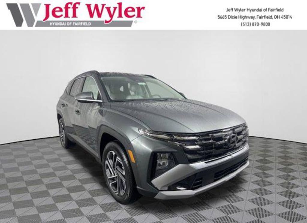 2026 Hyundai Tucson Hybrid Amazon Gray Limited AWD 6-Speed Automatic 1.6L I4 DGI Hybrid Turbocharged DOHC 16V LEV3-SULEV30 1.6L I4 DGI Hybrid Turbocharged DOHC 16V LEV3-SULEV30, Android Auto, Apple CarPlay, CALL NOW FOR YOUR VIP APPOINTMENT 513-870-9800, FULLY SERVICED w/RECORDS, GUARANTEED FINANCING!! NO MATTER YOUR SITUATION WE CAN GET AN APPROVAL!!, THE #1 Volume dealer in the region! Come see why for yourself Today!!, WE PAY MORE FOR YOUR TRADE!!. 37/36 City/Highway MPG Jeff Wyler Hyundai of Fairfield is honored to offer this charming 2026 Hyundai Tucson Hybrid Limited in Amazon Gray. Well equipped with: Option Group 01, Tow & Go Package (Ball Mount Kit and Tow Hitch), 1.6L I4 DGI Hybrid Turbocharged DOHC 16V LEV3-SULEV30, Android Auto, Apple CarPlay, CALL NOW FOR YOUR VIP APPOINTMENT 513-870-9800, FULLY SERVICED w/RECORDS, GUARANTEED FINANCING!! NO MATTER YOUR SITUATION WE CAN GET AN APPROVAL!!, THE #1 Volume dealer in the region! Come see why for yourself Today!!, WE PAY MORE FOR YOUR TRADE!!, 4-Wheel Disc Brakes, 8 Speakers, ABS brakes, Air Conditioning, Alloy wheels, AM/FM radio: SiriusXM, Apple CarPlay & Android Auto, Auto High-beam Headlights, Auto-dimming Rear-View mirror, Automatic temperature control, Brake assist, Bumpers: body-color, Cargo Cover, Cargo Net, Carpeted Floor Mats, Delay-off headlights, Driver door bin, Driver vanity mirror, Dual front impact airbags, Dual front side impact airbags, Electronic Stability Control, Emergency communication system: Bluelink+, First Aid Kit, Four wheel independent suspension, Front anti-roll bar, Front Bucket Seats, Front Center Armrest, Front dual zone A/C, Front reading lights, Fully automatic headlights, Garage door transmitter: HomeLink, Heads-Up Display, Heated & Ventilated Front Bucket Seats, Heated door mirrors, Heated front seats, Heated rear seats, Heated steering wheel, Illuminated entry, Leather steering wheel, Leather-Trimmed Seat Trim, Low tire pressure warning, Memory seat, Navigation System, Occupant sensing airbag, Outside temperature display, Overhead airbag, Overhead console, Panic alarm, Passenger door bin, Passenger vanity mirror, Power door mirrors, Power driver seat, Power Liftgate, Power moonroof, Power passenger seat, Power steering, Power windows, Radio data system, Radio: Bose Premium w/AM/FM/HD Audio System, Rain sensing wipers, Rear anti-roll bar, Rear reading lights, Rear seat center armrest, Rear side impact airbag, Rear window defroster, Rear window wiper, Remote keyless entry, Security system, Speed control, Split folding rear seat, Spoiler, Steering wheel mounted audio controls, Tachometer, Telescoping steering wheel, Tilt steering wheel, Traction control, Trip computer, Turn signal indicator mirrors, Variably intermittent wipers, Ventilated front seats, and Wheels: 19" x 7.5J Alloy. Price includes: $3000 - Hyundai HMF Dealer Choice : $3000 discount and 5.49% APR for 24 months. $44.09 per $1000 financed. Available to well qualified buyers who finance through Hyundai Motor Finance. H704. Exp. 12/01/2025 $400 - College Graduate Program. Exp. 12/01/2025 $500 - Military Program. Exp. 12/01/2025