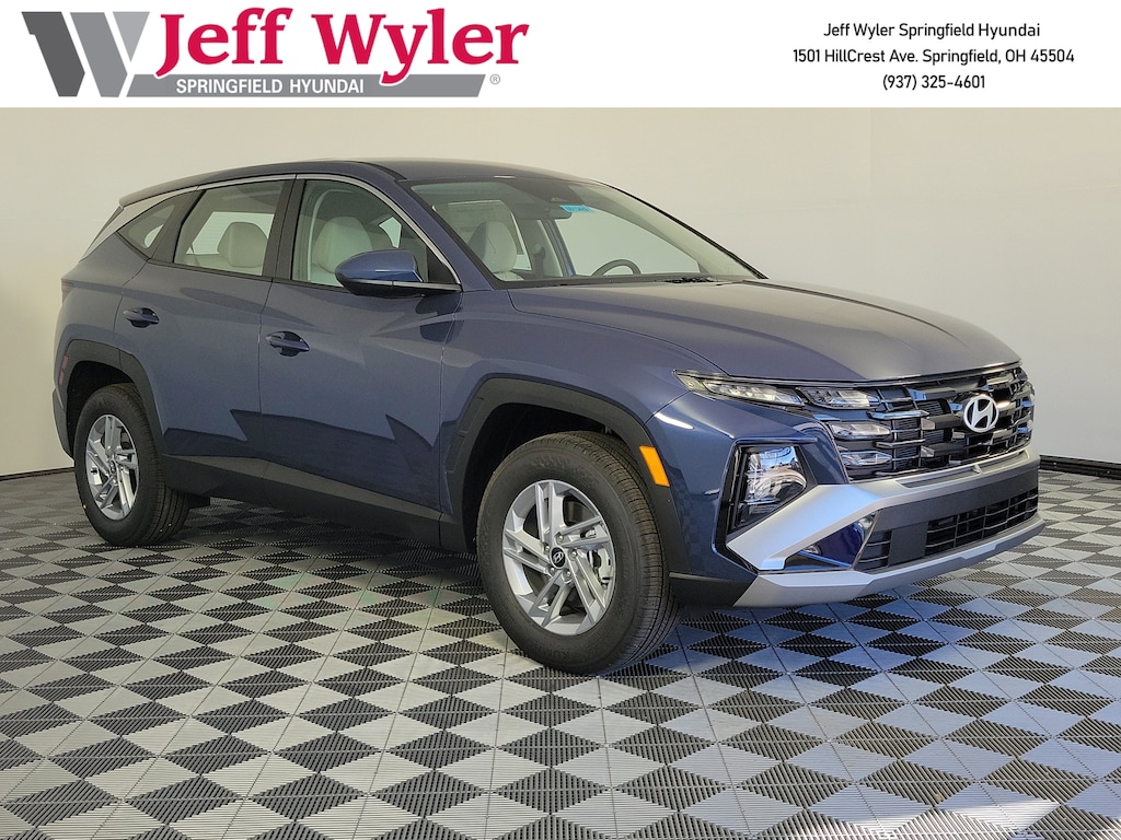Jeff Wyler Springfield Auto Mall is excited to offer this beautiful 2026 Hyundai Tucson SE in Atlantis Blue. Well equipped with: Option Group 01, 17" x 7.0J Alloy Wheels, 4-Wheel Disc Brakes, 6 Speakers, ABS brakes, Air Conditioning, Alloy wheels, AM/FM radio: SiriusXM, Apple CarPlay & Android Auto, Auto High-beam Headlights, Brake assist, Bumpers: body-color, Cargo Cover, Cargo Net, Cargo Tray, Carpeted Floor Mats, Delay-off headlights, Driver door bin, Driver vanity mirror, Dual front impact airbags, Dual front side impact airbags, Electronic Stability Control, Emergency communication system: Bluelink+, First Aid Kit, Four wheel independent suspension, Front anti-roll bar, Front Bucket Seats, Front Center Armrest, Front reading lights, Fully automatic headlights, Illuminated entry, Low tire pressure warning, Occupant sensing airbag, Outside temperature display, Overhead airbag, Overhead console, Panic alarm, Passenger door bin, Passenger vanity mirror, Power door mirrors, Power steering, Power windows, Radio data system, Radio: AM/FM/HD Audio System, Rear anti-roll bar, Rear reading lights, Rear seat center armrest, Rear side impact airbag, Rear window defroster, Rear window wiper, Remote keyless entry, Security system, Speed control, Split folding rear seat, Spoiler, Stain & Odor Resistant Cloth Seat Trim, Steering wheel mounted audio controls, Tachometer, Telescoping steering wheel, Tilt steering wheel, Traction control, Trip computer, and Variably intermittent wipers. 24/30 City/Highway MPG 24/30 City/Highway MPGWyler Family First Package Includes: NanoCure Appearance Protection: Exterior & Interior Chemical Sealant Applied to Protect Against Environmental Hazards (7 Year Warranty Coverage). Pulse- Rear end Collision Avoidance System Theft Deterrent Strategy gives you 5 Years of Coverage against vehicle Theft, Offering up to a $5,000 benefit. $1,400 - Exp. 01/01/2026
