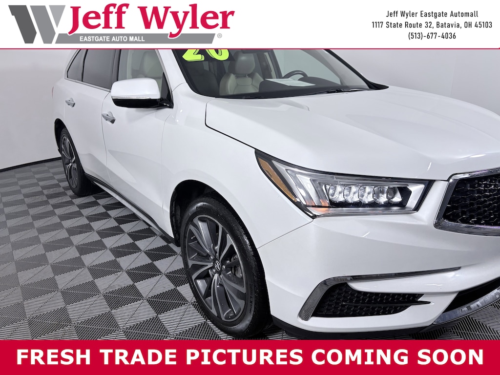 Jeff Wyler Eastgate Auto Mall is excited to offer this fantastic 2020 Acura MDX Technology in White. Well equipped with: 10 Speakers, 3rd row seats: bench, 4-Wheel Disc Brakes, 4.33 Axle Ratio, ABS brakes, Air Conditioning, Alloy wheels, AM/FM radio: SiriusXM, Anti-whiplash front head restraints, Apple CarPlay/Android Auto, Audio memory, Auto High-beam Headlights, Auto tilt-away steering wheel, Auto-dimming Rear-View mirror, Automatic temperature control, Brake assist, Bumpers: body-color, CD player, Compass, Delay-off headlights, Driver door bin, Driver vanity mirror, Dual front impact airbags, Dual front side impact airbags, Electronic Stability Control, Emergency communication system, Exterior Parking Camera Rear, Four wheel independent suspension, Front anti-roll bar, Front Bucket Seats, Front Center Armrest, Front dual zone A/C, Front reading lights, Garage door transmitter: HomeLink, Genuine wood console insert, Genuine wood dashboard insert, Genuine wood door panel insert, Heated door mirrors, Heated front seats, Heated Front Sport Seats, HVAC memory, Illuminated entry, Knee airbag, Lane departure: Lane Keeping Assist System (LKAS) active, Leather steering wheel, Low tire pressure warning, Memory seat, Navigation System, Occupant sensing airbag, Outside temperature display, Overhead airbag, Overhead console, Panic alarm, Passenger door bin, Passenger vanity mirror, Perforated Premium Leather w/Contrast Stitching, Power door mirrors, Power driver seat, Power Liftgate, Power moonroof, Power passenger seat, Power steering, Power windows, Premium audio system: Acura/ELS Surround, Radio data system, Radio: Acura/ELS Studio Premium Audio System, Rain sensing wipers, Rear air conditioning, Rear anti-roll bar, Rear reading lights, Rear seat center armrest, Rear window defroster, Rear window wiper, Remote keyless entry, Security system, Speed control, Speed-sensing steering, Speed-Sensitive Wipers, Split folding rear seat, Spoiler, Steering wheel memory, Steering wheel mounted audio controls, Tachometer, Telescoping steering wheel, Tilt steering wheel, Traction control, Trip computer, Turn signal indicator mirrors, Variably intermittent wipers, and Wheels: 20" x 8" Shark Gray Twisted 10-Spoke. CARFAX One-Owner. Clean CARFAX. Ask about available certifications. Used vehicles 10 years of age or newer with less than 100,000 miles are eligible for the Wyler Assurance Program, but eligible vehicles must pass our reconditioning process and multi-point inspection. Provided the vehicle passes inspection, vehicles will be eligible for the 6 month/6,000 mile limited warranty. The 6 month/6,000 mile limited warranty is NOT available on AS-IS vehicles, wholesale vehicles, lease buyback/pass-thru vehicles or un-inspected vehicles. Note that this program can also apply to vehicles where the remaining factory coverage is less than 6 months or 6,000 miles. Please check the Federal Trade Commission (FTC) Buyers guide on the vehicle for full details as to whether or not warranty coverage may apply. Contact Dealer for additional details. The Wyler Assurance 6 month/6,000 Mile limited warranty ends 6 months from the date of the Retail Purchase Agreement (BUYERS ORDER) or when the vehicle's odometer registers 6,000 additional miles to the mileage listed on the BUYERS ORDER, whichever comes first. Your Deductible - The warranty holder on your contract pays the first $100 of each covered repair.