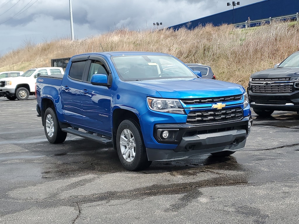 Jeff Wyler Florence Buick GMC is excited to offer this stunning-looking 2022 Chevrolet Colorado LT in Bright Blue Metallic. Black Bowtie Emblem Package (LPO), Heavy-Duty Trailering Package, LT Convenience Package (Front Fog Lamps, Manual Rear-Sliding Window, Rear-Window Electric Defogger, and Remote Vehicle Starter System), Preferred Equipment Group 4LT (Enhanced Driver Instrument Information Display and Rear Vision Camera), Trail Boss Package (DISC) (Black Colorado Emblems (LPO), Black Tailgate CHEVROLET Lettering (LPO), Front 1 Leveling Kit (LPO), Red Recovery Hooks (LPO), and Wheels: 17 High Gloss Black (LPO)), 3.42 Rear Axle Ratio, 4-Wheel Disc Brakes, 6 Speakers, 6-Speaker Audio System Feature, ABS brakes, Air Conditioning, Alloy wheels, AM/FM radio: SiriusXM, Apple CarPlay/Android Auto, Auto-dimming Rear-View mirror, Automatic Locking Rear Differential, Bumpers: body-color, Cloth Seat Trim, Compass, Delay-off headlights, Driver 6-Way Power Seat Adjuster, Driver door bin, Driver vanity mirror, Dual front impact airbags, Dual front side impact airbags, Electronic Stability Control, Exterior Parking Camera Rear, Front anti-roll bar, Front Bucket Seats, Front Center Armrest, Front reading lights, Front wheel independent suspension, Fully automatic headlights, Heated Driver & Front Passenger Seats, Heated Steering Wheel, Illuminated entry, Integrated Trailer Brake Controller, Low tire pressure warning, Occupant sensing airbag, Outside Heated Power-Adjustable Body-Color Mirrors, Outside temperature display, Overhead airbag, Overhead console, Panic alarm, Passenger door bin, Passenger vanity mirror, Power door mirrors, Power Driver Lumbar Control Seat Adjuster, Power driver seat, Power steering, Power windows, Premium audio system: Chevrolet Infotainment 3, Radio data system, Radio: Chevrolet Infotainment 3 System, Rear reading lights, Rear seat center armrest, Rear step bumper, Remote keyless entry, Security system, SiriusXM Radio, Speed control, Speed-sensing steering, Steering wheel mounted audio controls, Tachometer, Telescoping steering wheel, Tilt steering wheel, Traction control, Trip computer, Variably intermittent wipers, and Wheels: 17 x 8 Blade Silver Metallic Cast Alloy Our PRE-OWNED vehicles are put through a rigorous 167- POINT QUALITY ASSURANCE INSPECTION along with an average amount of over $1,400.00 SPENT to recondition each vehicle so we can be sure to deliver you the highest quality vehicle like you deserve! ***ONLINE PRICE DOES NOT INCLUDE WYLER FAMILY FIRST PACKAGE*** Stop by 1154 Burlington Pike Florence KY 41402to see for yourself, or give us a call @ 859-525-8001 to schedule your test drive!