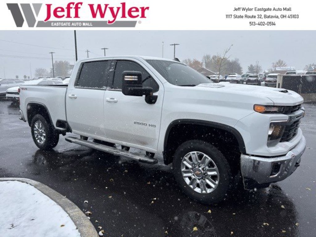 Jeff Wyler Eastgate Auto Mall is pleased to offer this good-looking 2025 Chevrolet Silverado 2500HD LT in Summit White. Well equipped with: Convenience Package (10-Way Power Driver Seat Adjuster w/Lumbar, Dual-Zone Automatic Climate Control, Front LED Fog Lamps, LED Cargo Area Lighting, and Manual Tilt & Telescoping Steering Column), Heat Package (Heated Driver & Front Outboard Passenger Seating and Heated Steering Wheel), Preferred Equipment Group 1LT (120-Volt Bed Mounted Power Outlet, 120-Volt Interior Power Outlet, 170 Amp Alternator, 2-Speed Electronic Shift Transfer Case, 4-Way Manual Driver Seat Adjuster, Black Mirror Caps, Bluetooth® For Phone, Chevrolet Connected Access Capable, Color-Keyed Carpeting Floor Covering, Compass, Deep-Tinted Glass, Electronic Cruise Control w/Set & Resume Speed, EZ Lift Power Lock & Release Tailgate, Front Rubberized Vinyl Floor Mats, Halogen Reflector Headlamps, HD Rear Vision Camera, Heated Vertical Trailering Mirrors, Keyless Open & Start, OnStar Services Capable, Power Door Locks, Power Front Windows w/Driver Express Up/Down, Power Front Windows w/Passenger Express Down, Power Rear Windows w/Express Down, Push Button Start, Rear 60/40 Folding Bench Seat (Folds Up), Rear Rubberized Vinyl Floor Mats, SiriusXM w/360L Trial Subscription, Standard Tailgate, Steering Wheel Audio Controls, Wi-Fi Hotspot Capable, Wireless Phone Projection, and Wrapped Steering Wheel), Remote Start Package (Electric Rear-Window Defogger, Remote Vehicle Starter System, and Unauthorized Entry Theft-Deterrent System), Safety Package (Bed View Camera w/2 Trailer Camera Provisions, HD Surround Vision, In-Vehicle Trailering App System, Rear Cross Traffic Alert, Trailer Camera Provisions, Trailer Side Blind Zone Alert, and Ultrasonic Front & Rear Park Assist), Suspension Package, 17" Machined Aluminum Wheels, 3.73 Rear Axle Ratio, 4-Wheel Disc Brakes, 6 Speakers, 6-Speaker Audio System, 6" Rectangular Chromed Tubular Assist Steps (LPO), 720 Cold-Cranking Amps Heavy-Duty Battery, ABS brakes, Air Conditioning, Alloy wheels, AM/FM radio: SiriusXM with 360L, Apple CarPlay/Android Auto, Auto High-beam Headlights, Auto-Dimming Inside Rear-View Mirror, Black Chevytec Spray-On Bedliner, Brake assist, Bumpers: chrome, Cloth Seat Trim, Delay-off headlights, Driver door bin, Driver vanity mirror, Dual front impact airbags, Dual front side impact airbags, Durabed Pickup Bed, Electronic Stability Control, Emergency communication system: OnStar, Front 40/20/40 Split-Bench Seats w/Lockable Storage, Front anti-roll bar, Front Center Armrest w/Storage, Front reading lights, Front wheel independent suspension, Fully automatic headlights, Heated & Auto-Dimming Vertical Trailering Mirrors, Heated door mirrors, Illuminated entry, Low tire pressure warning, Occupant sensing airbag, Outside temperature display, Overhead airbag, Overhead console, Panic alarm, Passenger door bin, Passenger vanity mirror, Power door mirrors, Power steering, Power windows, Premium audio system: Chevrolet Infotainment 3 Premium, Radio: Chevrolet Infotainment 3 Premium System, Rear reading lights, Rear step bumper, Rear Wheelhouse Liners, Remote keyless entry, Speed control, Split folding rear seat, Steering wheel mounted audio controls, Tachometer, Tilt steering wheel, Traction control, Trip computer, Turn signal indicator mirrors, Variably intermittent wipers, and Voltmeter. Clean CARFAX. Ask about available certifications. Used vehicles 10 years of age or newer with less than 100,000 miles are eligible for the Wyler Assurance Program, but eligible vehicles must pass our reconditioning process and multi-point inspection. Provided the vehicle passes inspection, vehicles will be eligible for the 6 month/6,000 mile limited warranty. The 6 month/6,000 mile limited warranty is NOT available on AS-IS vehicles, wholesale vehicles, lease buyback/pass-thru vehicles or un-inspected vehicles. Note that this program can also apply to vehicles where the remaining factory c
