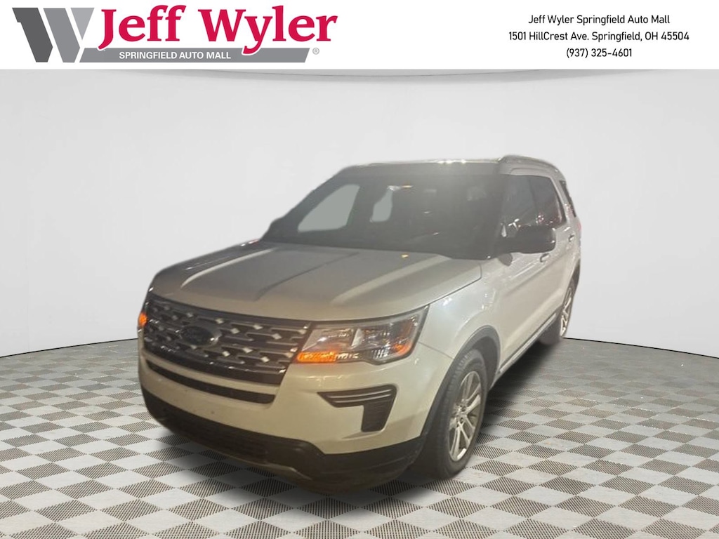 Jeff Wyler Springfield Auto Mall is pumped up to offer this stunning 2019 Ford Explorer XLT in White Platinum Clearcoat Metallic. Well equipped with: Class III Trailer Tow Package, Equipment Group 200A, 3.39 Non-Limited-Slip Axle Ratio, 3rd row seats: split-bench, 4-Wheel Disc Brakes, 6 Speakers, ABS brakes, Air Conditioning, Alloy wheels, AM/FM radio: SiriusXM, AM/FM Stereo, Brake assist, Bumpers: body-color, Compass, Delay-off headlights, Driver door bin, Driver vanity mirror, Dual front impact airbags, Dual front side impact airbags, Electronic Stability Control, Emergency communication system: 911 Assist, Exterior Parking Camera Rear, Four wheel independent suspension, Front & Second Row Floor Liners, Front anti-roll bar, Front Bucket Seats, Front Center Armrest, Front reading lights, Fully automatic headlights, Heated door mirrors, Illuminated entry, Knee airbag, Leather steering wheel, Low tire pressure warning, Occupant sensing airbag, Outside temperature display, Overhead airbag, Overhead console, Panic alarm, Passenger door bin, Passenger vanity mirror, Power door mirrors, Power driver seat, Power passenger seat, Power steering, Power windows, Rear air conditioning, Rear anti-roll bar, Rear Parking Sensors, Rear reading lights, Rear seat center armrest, Rear window defroster, Rear window wiper, Remote keyless entry, Roof rack: rails only, Security system, Speed control, Speed-sensing steering, Speed-Sensitive Wipers, Split folding rear seat, Spoiler, Steering wheel mounted audio controls, SYNC Communication & Entertainment System, Tachometer, Telescoping steering wheel, Tilt steering wheel, Traction control, Trip computer, Unique Cloth Bucket Seats, Variably intermittent wipers, Wheels: 18" 5-Split-Spoke Sparkle Silver-Painted, and Wheels: 18" 5-Spoke Sparkle Silver-Painted Alum. Ask about available certifications. Used vehicles 10 years of age or newer with less than 100,000 miles are eligible for the Wyler Assurance Program, but eligible vehicles must pass our reconditioning process and multi-point inspection. Provided the vehicle passes inspection, vehicles will be eligible for the 6 month/6,000 mile limited warranty. The 6 month/6,000 mile limited warranty is NOT available on AS-IS vehicles, wholesale vehicles, lease buyback/pass-thru vehicles or un-inspected vehicles. Note that this program can also apply to vehicles where the remaining factory coverage is less than 6 months or 6,000 miles. Please check the Federal Trade Commission (FTC) Buyers guide on the vehicle for full details as to whether or not warranty coverage may apply. Contact Dealer for additional details. The Wyler Assurance 6 month/6,000 Mile limited warranty ends 6 months from the date of the Retail Purchase Agreement (BUYERS ORDER) or when the vehicle's odometer registers 6,000 additional miles to the mileage listed on the BUYERS ORDER, whichever comes first. Your Deductible - The warranty holder on your contract pays the first $100 of each covered repair.