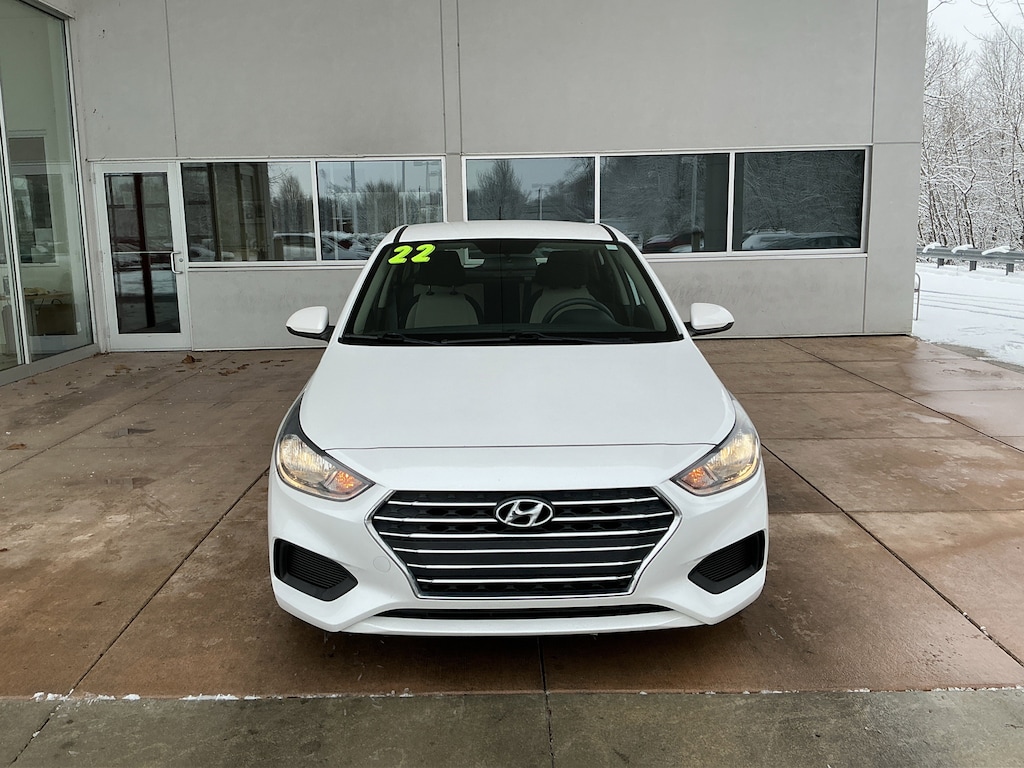Jeff Wyler Springfield Auto Mall is very proud to offer this wonderful 2022 Hyundai Accent SE in Frost White Pearl. Well equipped with: Option Group 01, 4 Speakers, ABS brakes, Air Conditioning, AM/FM radio, Anti-whiplash front head restraints, Brake assist, Bumpers: body-color, Cargo Net, Cargo Tray, Carpeted Floor Mats, Cloth Seat Trim, Driver door bin, Driver vanity mirror, Dual front impact airbags, Dual front side impact airbags, Electronic Stability Control, Exterior Parking Camera Rear, Front anti-roll bar, Front Bucket Seats, Front reading lights, Front wheel independent suspension, Illuminated entry, Low tire pressure warning, Occupant sensing airbag, Outside temperature display, Overhead airbag, Overhead console, Panic alarm, Passenger door bin, Passenger vanity mirror, Power door mirrors, Power steering, Power windows, Radio: Audio 4.0B AM/FM, Rear window defroster, Remote keyless entry, Security system, Speed control, Speed-sensing steering, Split folding rear seat, Steering wheel mounted audio controls, Tachometer, Tilt steering wheel, Traction control, Trip computer, and Wheels: 5.5J x 15" Steel w/Covers. Ask about available certifications. Used vehicles 10 years of age or newer with less than 100,000 miles are eligible for the Wyler Assurance Program, but eligible vehicles must pass our reconditioning process and multi-point inspection. Provided the vehicle passes inspection, vehicles will be eligible for the 6 month/6,000 mile limited warranty. The 6 month/6,000 mile limited warranty is NOT available on AS-IS vehicles, wholesale vehicles, lease buyback/pass-thru vehicles or un-inspected vehicles. Note that this program can also apply to vehicles where the remaining factory coverage is less than 6 months or 6,000 miles. Please check the Federal Trade Commission (FTC) Buyers guide on the vehicle for full details as to whether or not warranty coverage may apply. Contact Dealer for additional details. The Wyler Assurance 6 month/6,000 Mile limited warranty ends 6 months from the date of the Retail Purchase Agreement (BUYERS ORDER) or when the vehicle's odometer registers 6,000 additional miles to the mileage listed on the BUYERS ORDER, whichever comes first. Your Deductible - The warranty holder on your contract pays the first $100 of each covered repair.