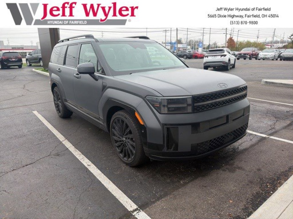 Clean CARFAX. Jeff Wyler Hyundai of Fairfield is pumped up to offer this good-looking 2025 Hyundai Santa Fe Calligraphy in Ecotronic Gray Matte. Well equipped with: Option Group 01, AWD, Gray Leather, Android Auto, Apple CarPlay, CALL NOW FOR YOUR VIP APPOINTMENT 513-870-9800, FULLY SERVICED w/RECORDS, GUARANTEED FINANCING!! NO MATTER YOUR SITUATION WE CAN GET AN APPROVAL!!, THE #1 Volume dealer in the region! Come see why for yourself Today!!, WE PAY MORE FOR YOUR TRADE!!, 12 Speakers, 3rd row seats: bench, 4-Wheel Disc Brakes, ABS brakes, Air Conditioning, Alloy wheels, AM/FM radio: SiriusXM, Apple CarPlay & Android Auto, Auto High-beam Headlights, Auto-dimming Rear-View mirror, Automatic temperature control, Brake assist, Bumpers: body-color, Cargo Blocks, Cargo Cover, Carpeted Floor Mats, Delay-off headlights, Driver door bin, Driver vanity mirror, Dual front impact airbags, Dual front side impact airbags, Electronic Stability Control, Emergency communication system, Exterior Parking Camera Rear, First Aid Kit, Four wheel independent suspension, Front anti-roll bar, Front Bucket Seats, Front Center Armrest, Front dual zone A/C, Front reading lights, Fully automatic headlights, Garage door transmitter: HomeLink, Heads-Up Display, Heated & Ventilated Front Bucket Seats, Heated door mirrors, Heated front seats, Heated rear seats, Heated steering wheel, Illuminated entry, Knee airbag, Leather steering wheel, Low tire pressure warning, Memory seat, Navigation System, Occupant sensing airbag, Outside temperature display, Overhead airbag, Overhead console, Panic alarm, Passenger door bin, Passenger vanity mirror, Power door mirrors, Power driver seat, Power Liftgate, Power moonroof, Power passenger seat, Power steering, Power windows, Premium Nappa Leather Seat Trim, Radio: AM/FM/HD Bose Premium Audio System, Rain sensing wipers, Rear anti-roll bar, Rear side impact airbag, Rear window defroster, Rear window wiper, Remote keyless entry, Security system, Speed control, Speed-sensing steering, Split folding rear seat, Spoiler, Steering wheel mounted audio controls, Tachometer, Telescoping steering wheel, Tilt steering wheel, Traction control, Trip computer, Turn signal indicator mirrors, Variably intermittent wipers, Ventilated front seats, and Wheels: 21" x 8.5J Unique Dark Finish Alloy. TO CHECK ON THE AVAILABILITY OF THIS VEHICLE REACH OUT TO ONE OF OUR TEAM MEMBERS!! ALSO SHOP ONLINE AT https://www.jeffwylerhyundaioffairfield.com/ Proudly Serving: Cincinnati, Dayton, Columbus, Louisville, Lexington, Indianapolis, Hamilton, Florence, Alexandria, Beavercreek, Springdale, West Chester, Monroe, Fairfield, Kenwood, Newport and all of greater Cincinnati Ohio, Indiana, and Northern Kentucky.