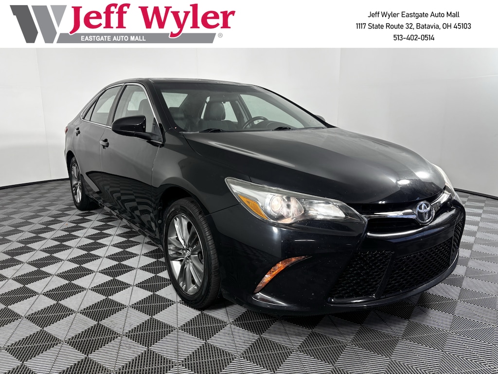 Jeff Wyler Eastgate Auto Mall is very proud to offer this wonderful-looking 2016 Toyota Camry in Black. Well equipped with: 4-Wheel Disc Brakes, 6 Speakers, ABS brakes, Air Conditioning, Brake assist, Bumpers: body-color, CD player, Delay-off headlights, Driver door bin, Driver vanity mirror, Dual front impact airbags, Dual front side impact airbags, Electronic Stability Control, Exterior Parking Camera Rear, Four wheel independent suspension, Front anti-roll bar, Front Bucket Seats, Front Center Armrest, Front reading lights, Fully automatic headlights, Heated door mirrors, Illuminated entry, Knee airbag, Low tire pressure warning, Occupant sensing airbag, Outside temperature display, Overhead airbag, Overhead console, Panic alarm, Passenger door bin, Passenger vanity mirror, Power door mirrors, Power driver seat, Power steering, Power windows, Radio: Entune Audio Plus, Rear anti-roll bar, Rear seat center armrest, Rear side impact airbag, Rear window defroster, Remote keyless entry, Speed control, Speed-sensing steering, Split folding rear seat, Steering wheel mounted audio controls, Tachometer, Telescoping steering wheel, Tilt steering wheel, Traction control, Trip computer, and Variably intermittent wipers. Awards: * 2016 KBB.com 5-Year Cost to Own Awards * 2016 KBB.com Best Buy Awards Finalist * 2016 KBB.com 10 Best UberX Candidates * 2016 KBB.com 10 Best Sedans Under $25,000 * 2016 KBB.com 10 Most Comfortable Cars Under $30,000 * 2016 KBB.com 10 Best Used Cars Under $15,000 * 2016 KBB.com 10 Most Awarded Cars Ask about available certifications. Used vehicles 10 years of age or newer with less than 100,000 miles are eligible for the Wyler Assurance Program, but eligible vehicles must pass our reconditioning process and multi-point inspection. Provided the vehicle passes inspection, vehicles will be eligible for the 6 month/6,000 mile limited warranty. The 6 month/6,000 mile limited warranty is NOT available on AS-IS vehicles, wholesale vehicles, lease buyback/pass-thru vehicles or un-inspected vehicles. Note that this program can also apply to vehicles where the remaining factory coverage is less than 6 months or 6,000 miles. Please check the Federal Trade Commission (FTC) Buyers guide on the vehicle for full details as to whether or not warranty coverage may apply. Contact Dealer for additional details. The Wyler Assurance 6 month/6,000 Mile limited warranty ends 6 months from the date of the Retail Purchase Agreement (BUYERS ORDER) or when the vehicle's odometer registers 6,000 additional miles to the mileage listed on the BUYERS ORDER, whichever comes first. Your Deductible - The warranty holder on your contract pays the first $100 of each covered repair.