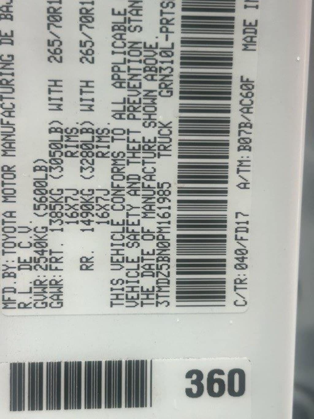 VIN# 3TMDZ5BN0PM161985Stock# 31T16437